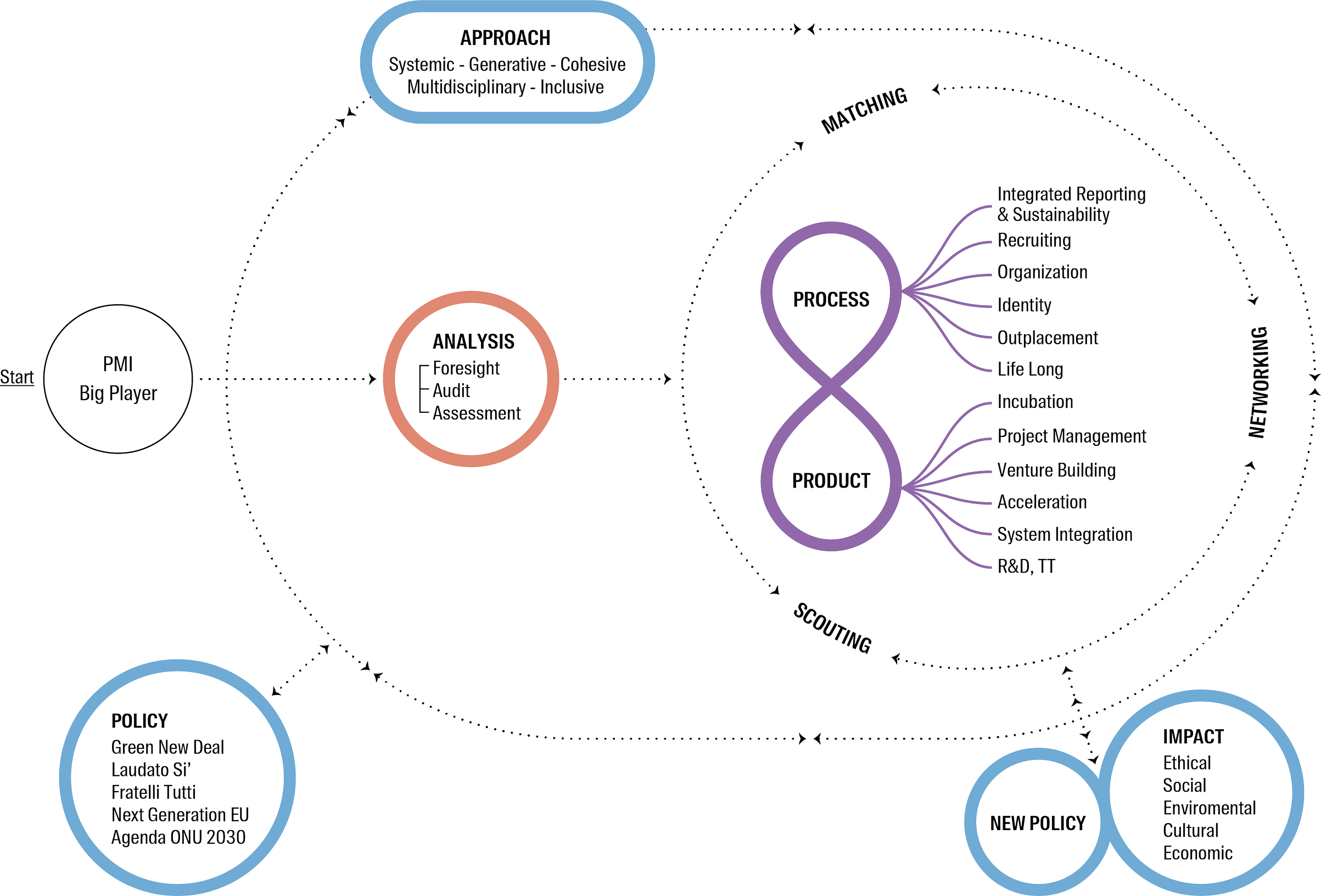 e rafforza l’altra, generando un flusso unico, dinamico e vitale in equilibrio tra visione, struttura e impatto.